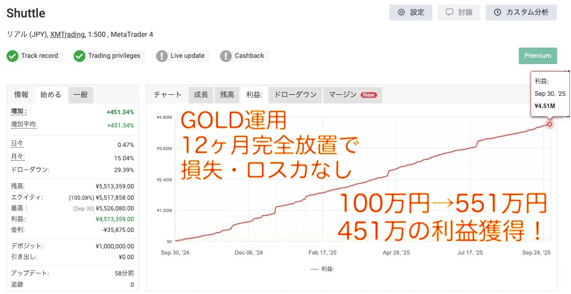 ですが、12ヶ月で100万円→551万円という実績が示す通り、