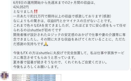 それくらい、Shuttle は完成度の高い“ほったらかし投資のシステム(EA)“ です。